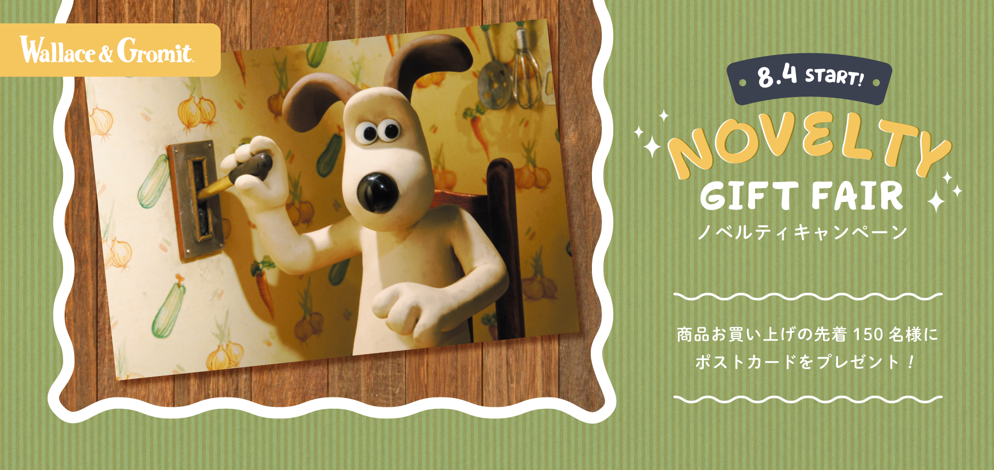 グルミットデザインのノベルティポストカードをもれなくプレゼントいたします!