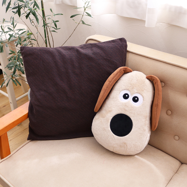 グルミットの愛らしい表情をデザインしたふわふわクッション。