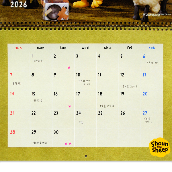 ひつじのショーンの大判サイズの壁掛けカレンダー。