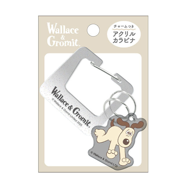 グリーン&グレーラメのカラビナにグルミットのチャームが付いたカラビナです。