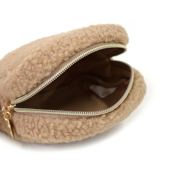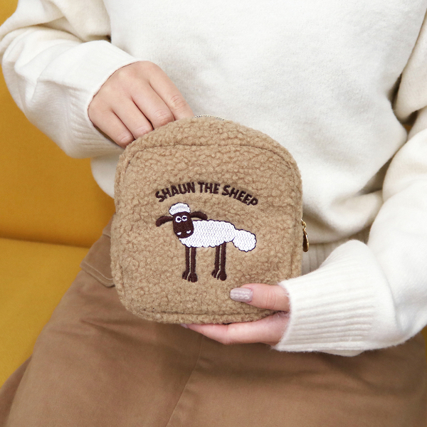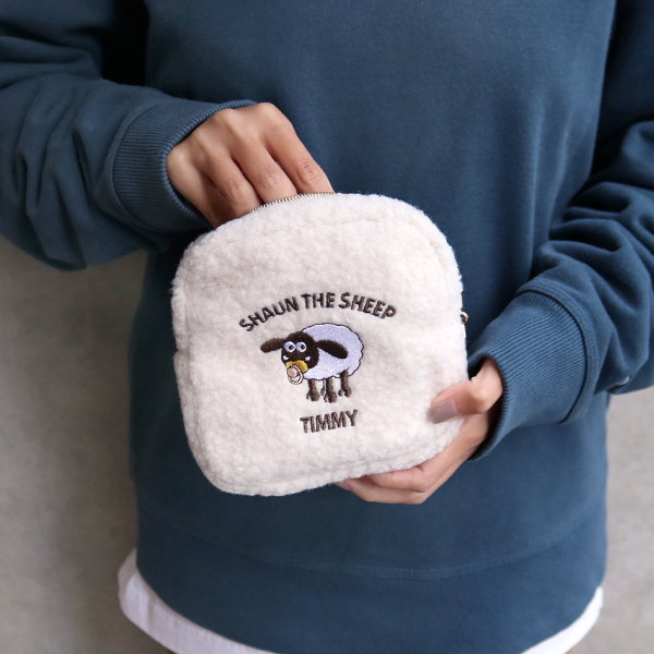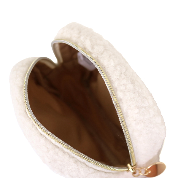 あたたかみのあるボア素材を使用したスクエアポーチです。