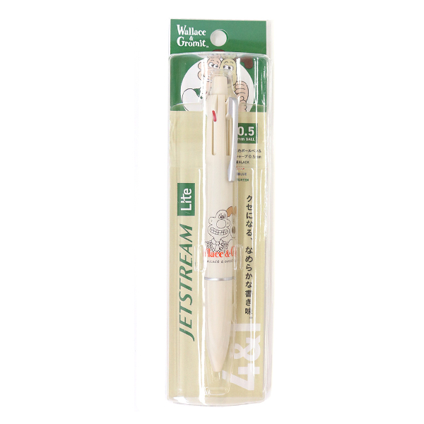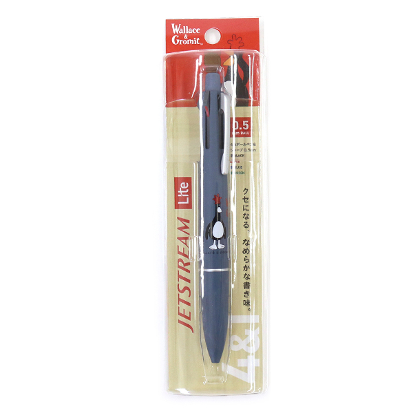 「ウォレスとグルミット」よりジェットストリームが登場!なめらかな書き味で、1本でボールペン4色とシャープの機能が揃った多機能ペンです。