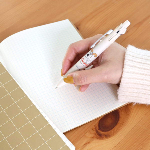 「ウォレスとグルミット」よりジェットストリームが登場!なめらかな書き味で、1本でボールペン4色とシャープの機能が揃った多機能ペンです。