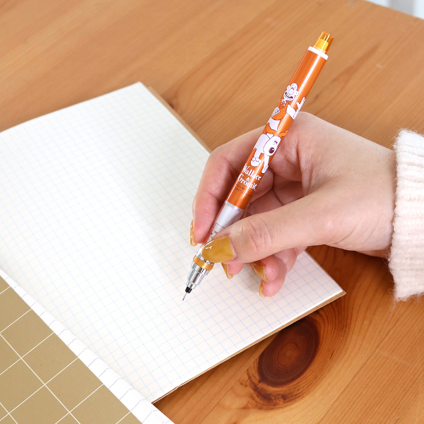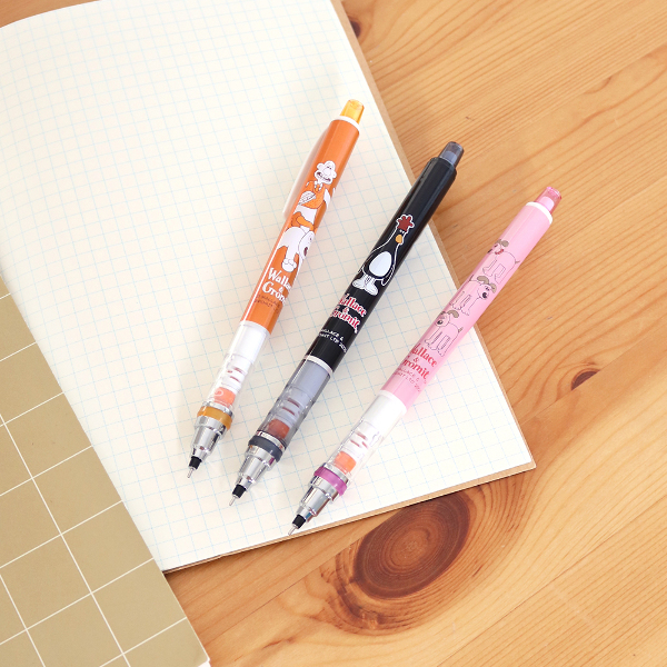 書くたびに芯が少しづつ回転し、芯がとがり続ける[クルトガエンジン]搭載。ウォレスとグルミットのイラストがシャープペンシル全面にぐるっとプリントされています。
