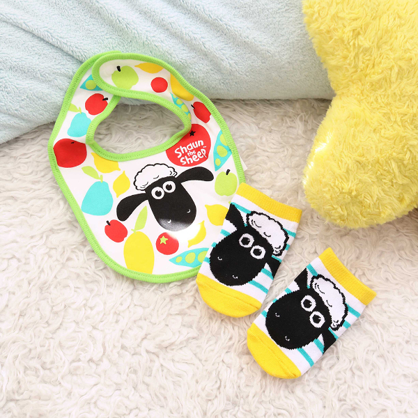 ビブとベビーサイズのソックスのパッケージセットです! クリアボックスに入っているのでギフトにもおススメ!