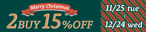 対象商品を2点以上お買い上げいただくと、対象商品が15%OFFとなります。