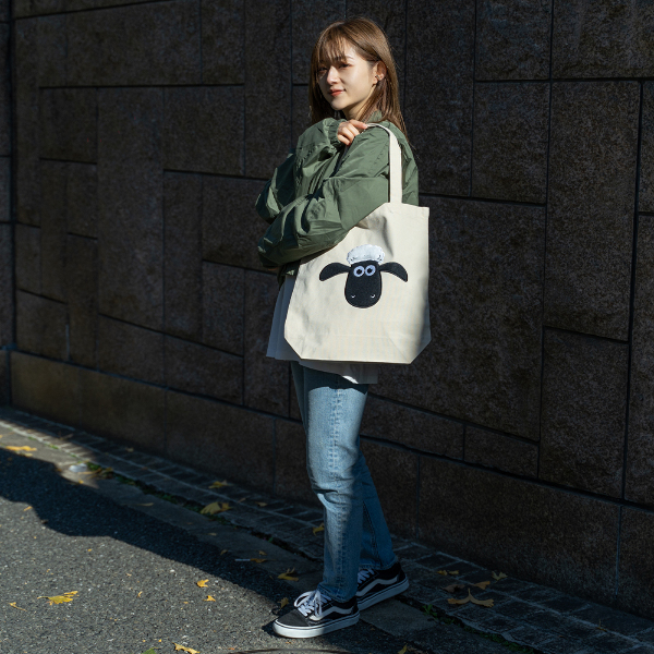 ショーンの顔をシープボアとフリースであしらったトートバッグ。
